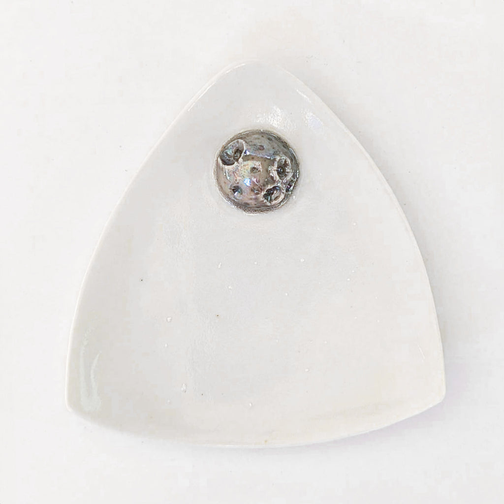 Bring a piece of the moon down to earth with this one-of-a-kind hand-crafted porcelain catch-all. Featuring a meticulously detailed lunar surface, hand-painted and accented in Mother of Pearl overglaze, each crater and shadow is carefully rendered to capture the moon's mysterious beauty in a functional piece of art.