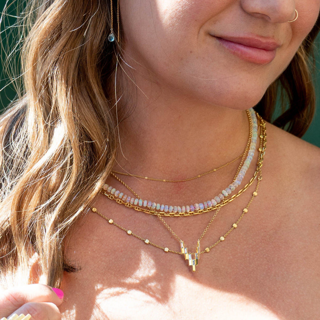 The After Glow Gemstone Pendant is 1L x 0.75W inches and 20" in length.