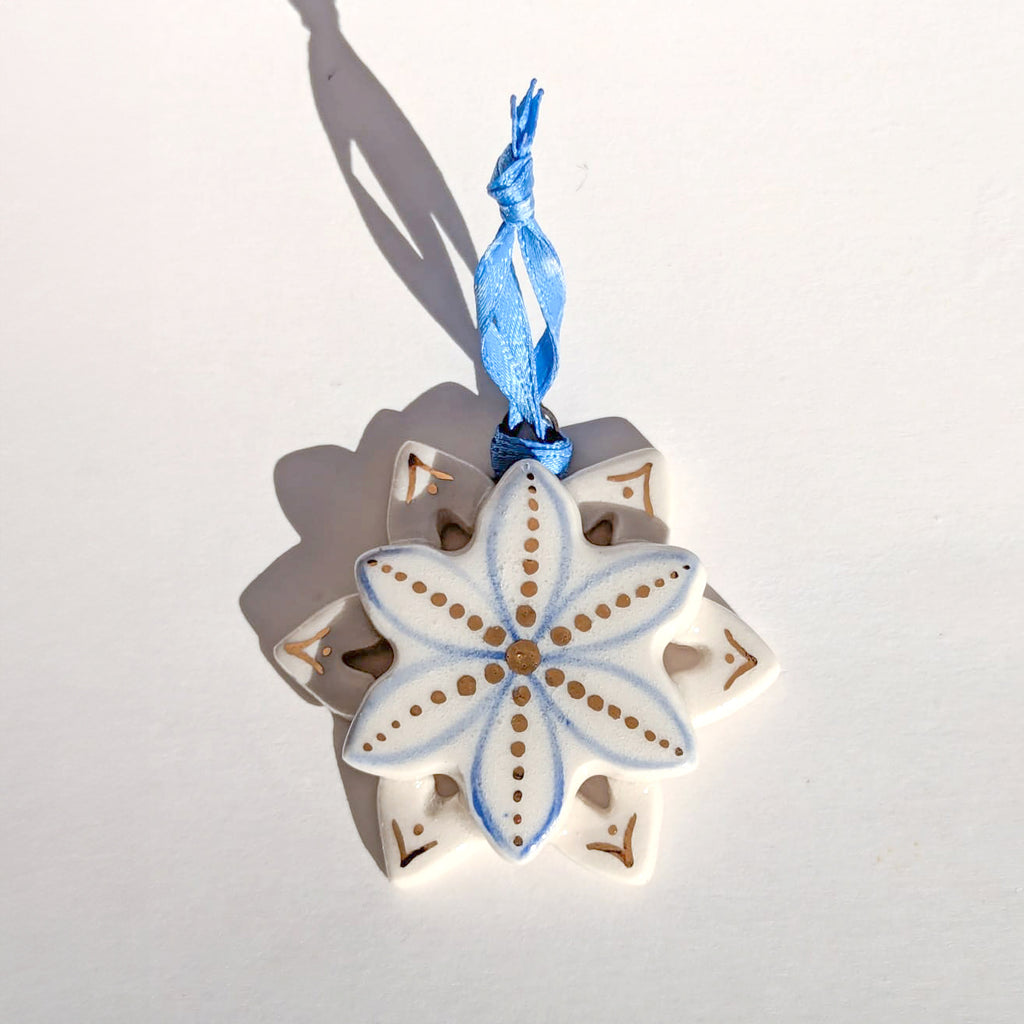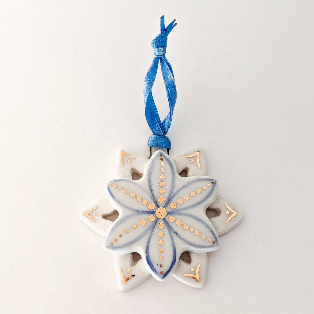 Hand Painted Porcelain Snowflake Ornament #4