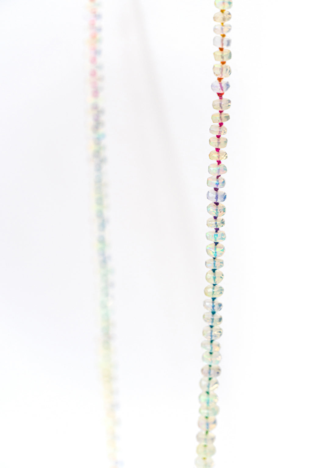 I meticulously hand-strung this strand of graduated opals on silk thread that is individually hand-painted by a local artisan making it a truly one-of-a-kind piece.