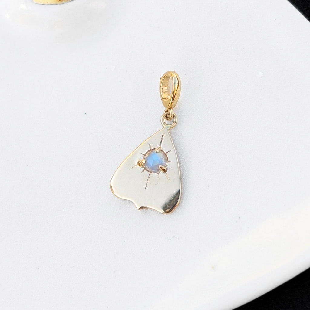 The Moonbeam Planchette | One of a Kind Rainbow Moonstone Sunburst Ouija Pendant | 14K Yellow Gold